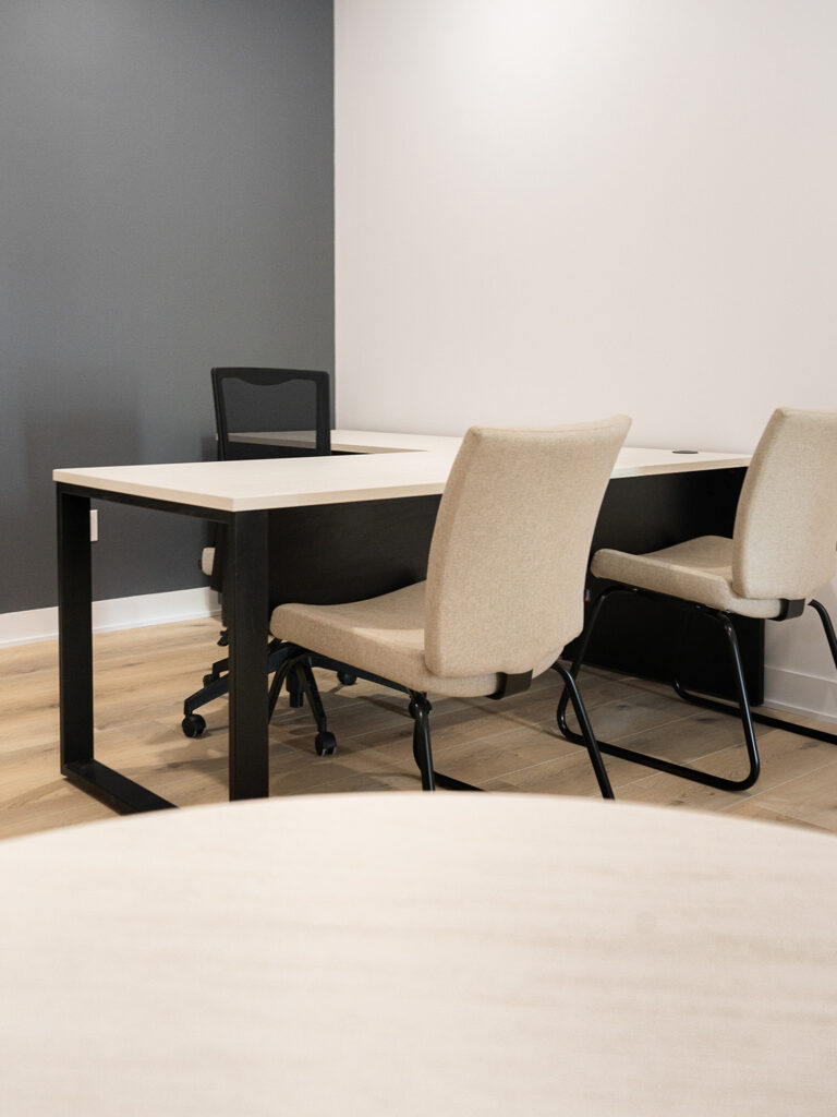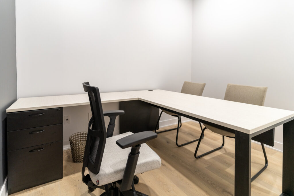 Bureau fermé, offrant un environnement confidentiel et propice à la concentration. Parfait pour les consultations, les rencontres privées ou le travail d’équipe en toute tranquillité. Ces bureaux peuvent accueillir jusqu’à 3 postes de travail (3 employés) dans un espace fonctionnel et confortable.